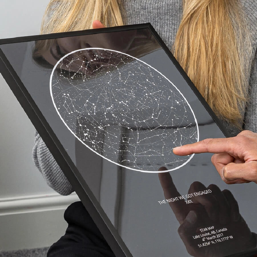 Each Star Map is generated using astronomer-approved data from over 2 million stars to show the exact night sky from your chosen date and place.
