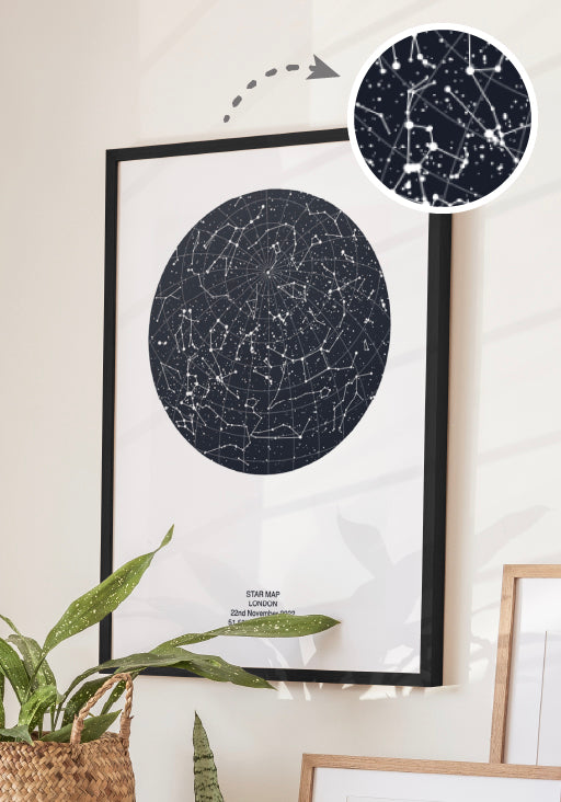 Take your wife’s admiration for the heavens to new heights with an exquisite framed star map — a stunning constellation gift for your wife that goes beyond the galaxy. Our personalised star maps unveils intricate constellations across the night sky, just as they were during a significant moment in her life.
